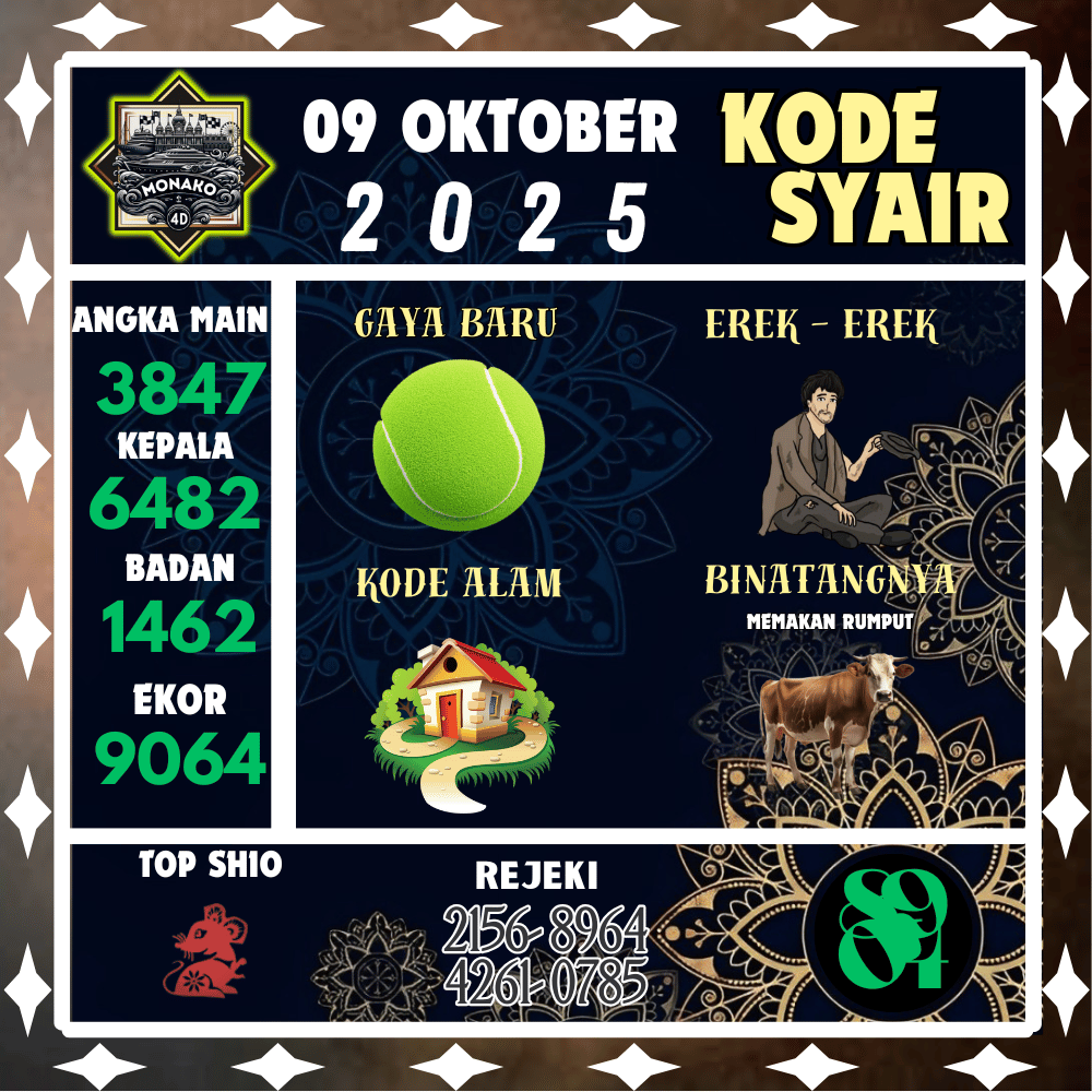 Kode Syair Monako4D Pools 09 Oktober 2025