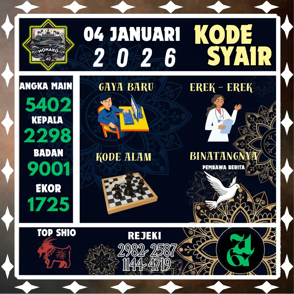 Kode Syair Monako4D Pools 04 Januari 2026