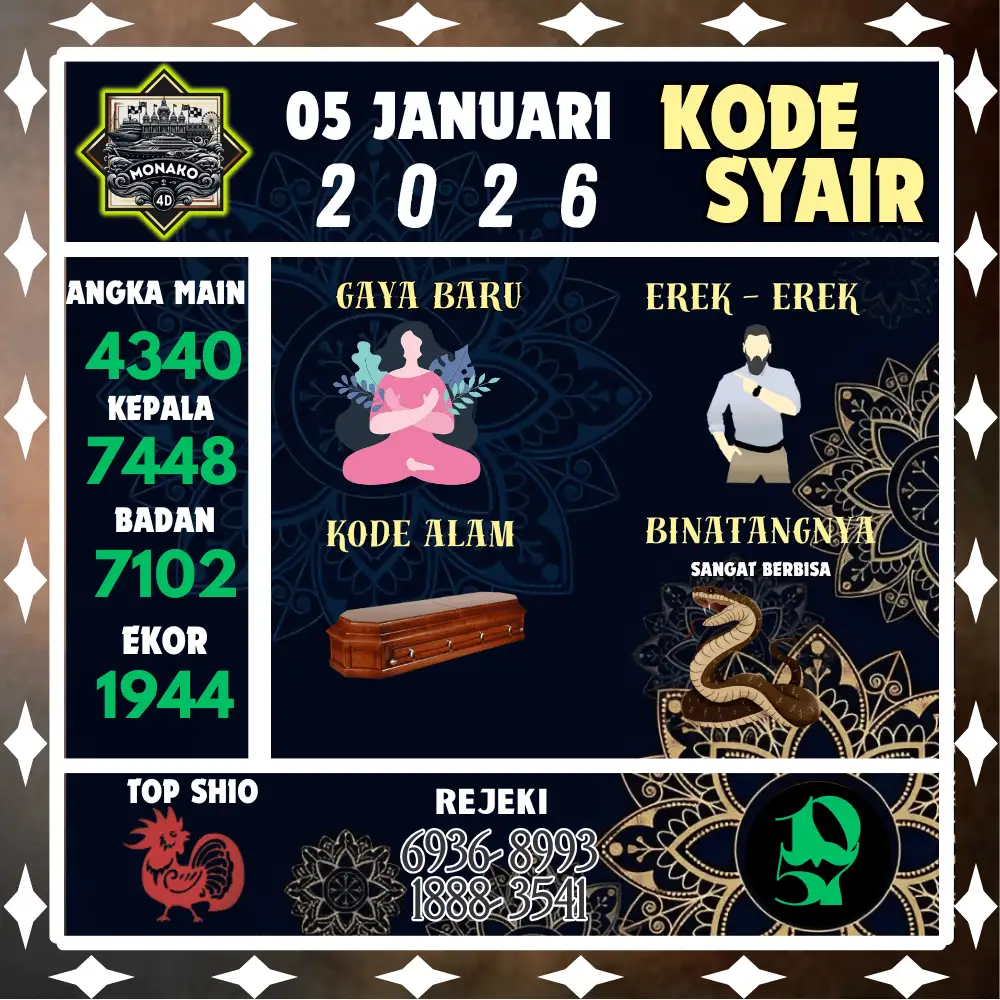 Kode Syair Monako4D Pools 05 Januari 2026