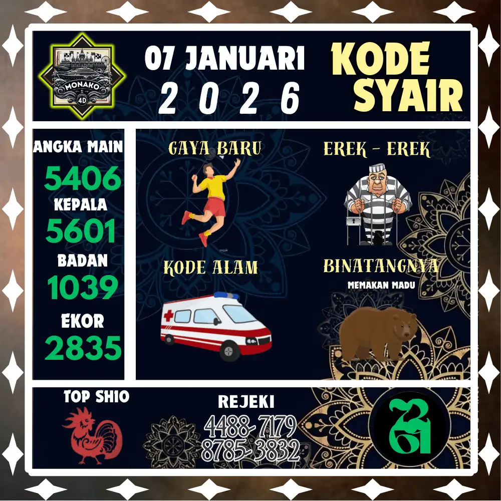 Kode Syair Monako4D Pools 07 Januari 2026