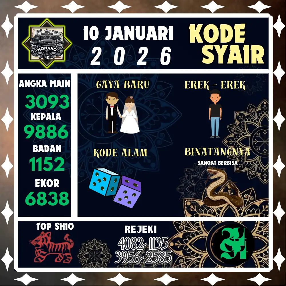 Kode Syair Monako4D Pools 10 Januari 2026