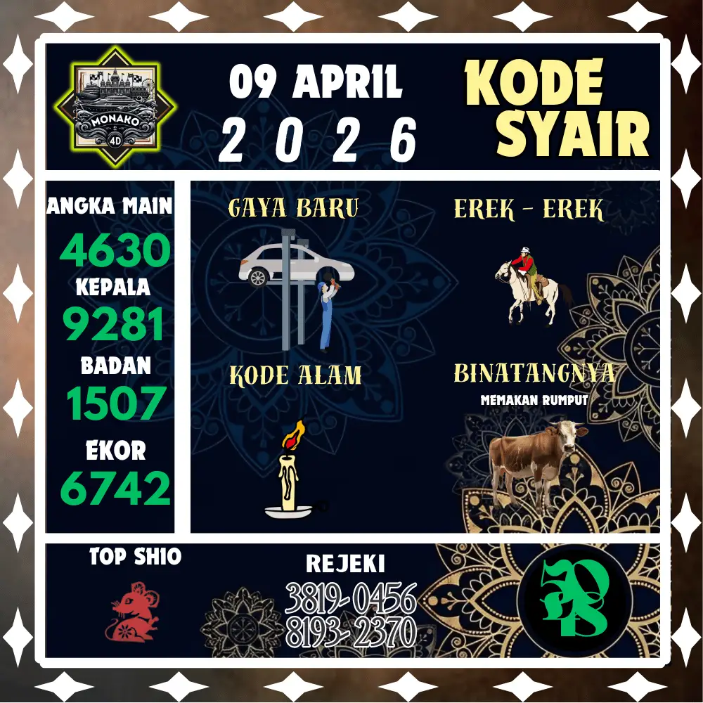 Kode Syair Monako4D Pools 09 April 2026