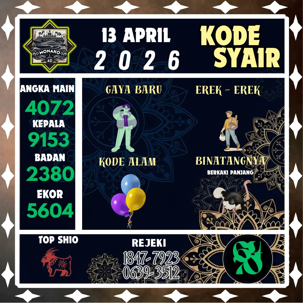 Kode Syair Monako4D Pools 13 April 2026
